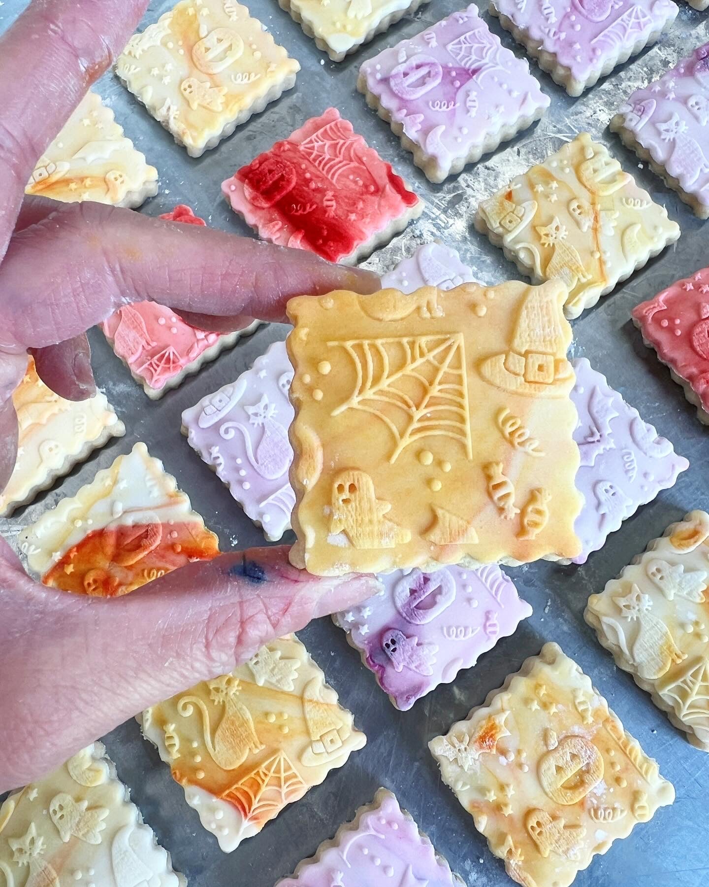 Biscuits come in boxes of 10, with a mix of the Halloween stamp and "Trick or Treat".